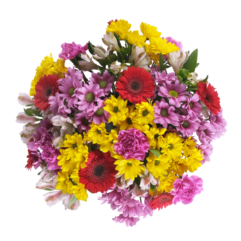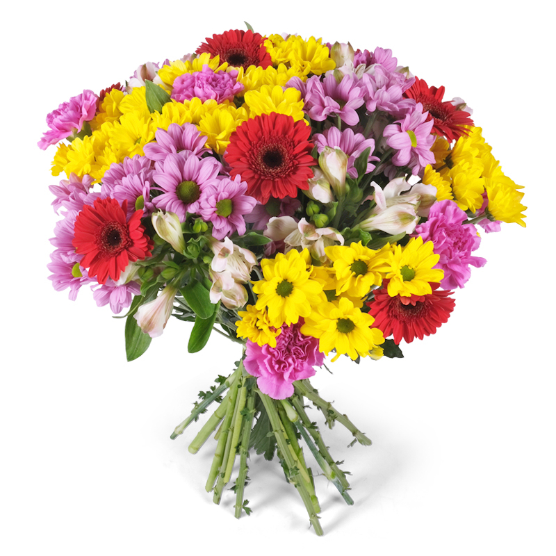 Zawsze świeże kwiaty Kwiaty dla kogoś, kto kocha, gdy życie jest pełne niespodzianek i kolorów. Gerbery, santini, goździki i alstromerie tworzą żywą kompozycję pełną energii. Dzięki bogatej formie bukiet zachwyca z każdej strony. Podaruj go, gdy chcesz naprawdę sprawić komuś radość.