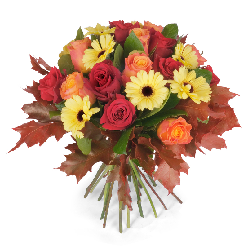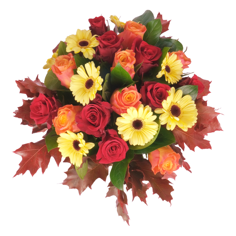 Bukiet „Obfita Jesień” wprowadza do wnętrza ciepło i harmonię. Kwiaty tworzą spójną, elegancką kompozycję. Liście klonu dodają jej charakteru i głębi. To idealny wybór dla osób ceniących naturalne piękno. Bukiet, który wzbudza zachwyt!